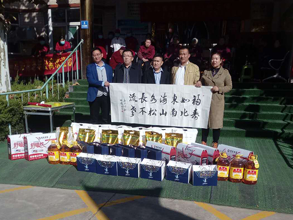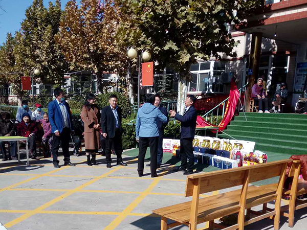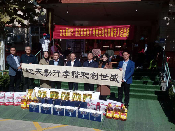 欢迎并感谢东方红家具广场党支部、和郭店街道办的领导,重阳节为老人送温暖,并带慰问品。